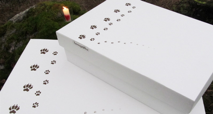 Laske lemmikkisi patjalle, peittele ja hyvästele rakkaasi omalla tavallasi. Lemmikkisi nimen ja hyvästisi voit kirjoittaa laatikon kanteen omilla sanoillasi. Anna muistokynttilän lohduttavan liekin saattaa ystäväsi tassupolulle.